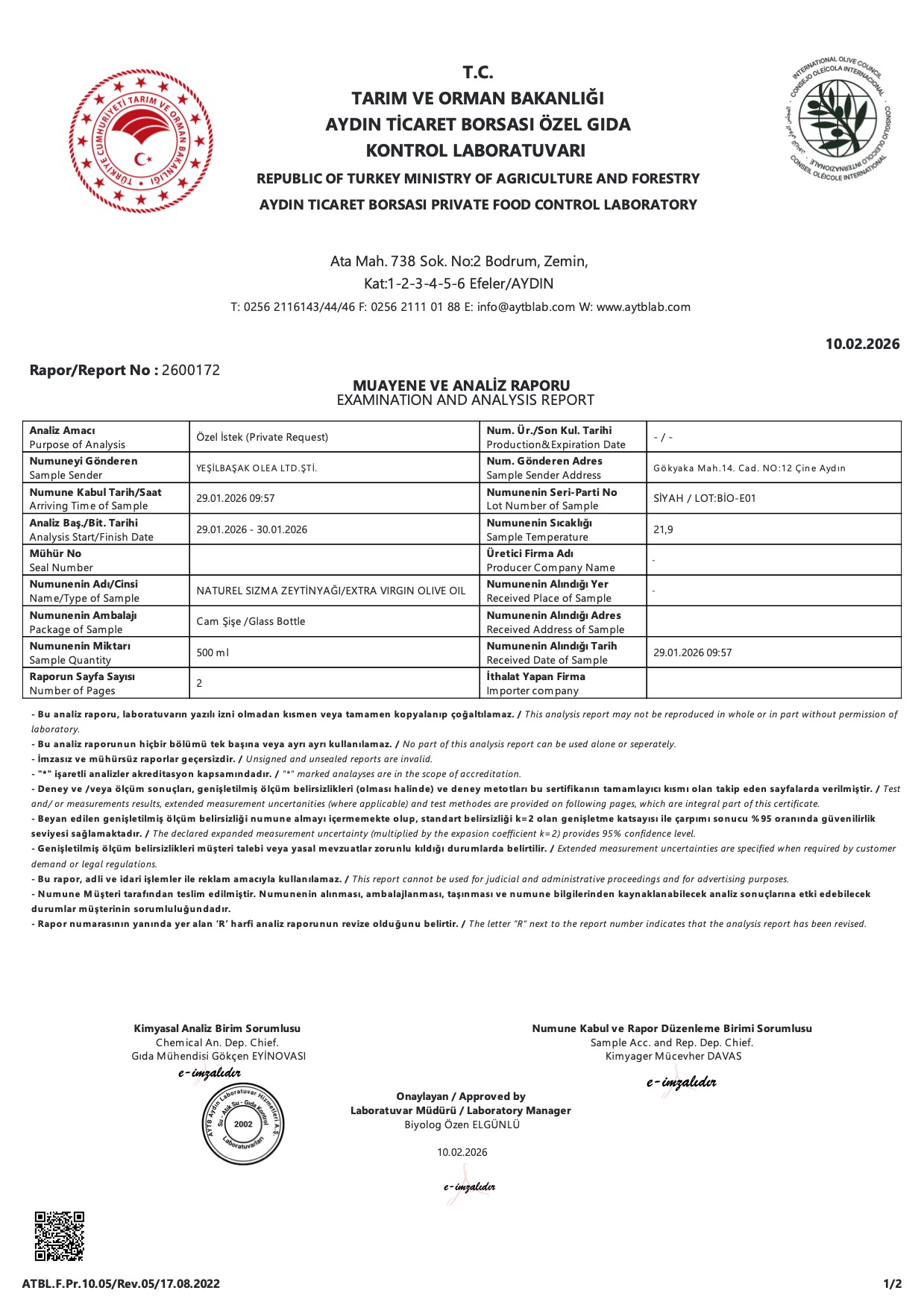 Die chemische Analyse bestätigt, dass unsere Olivenölprobe den Anforderungen der EU-Verordnung (EWG) Nr.2568/91 der Kommision (in der gültigen Fassung) für ‚natives Olivenöl extra‘ voll entspricht.