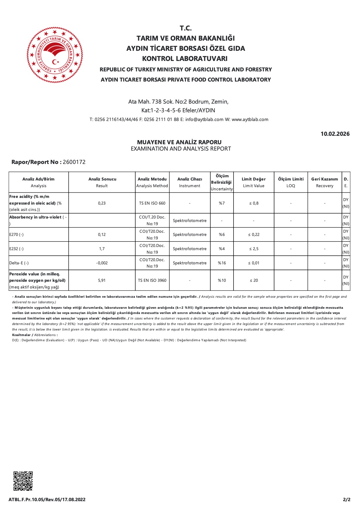 Im Erntejahr 2024/2025 beträgt der Fettsäuregehalt unseres Olivenöls nur 0,20%. Der Polyphenolgehalt liegt je nach Probe zwischen 436 und 481 mg/kg und die Peroxidzahl bei lediglich 4,96 meq O₂/kg (Siehe Analyse 1 & 2).