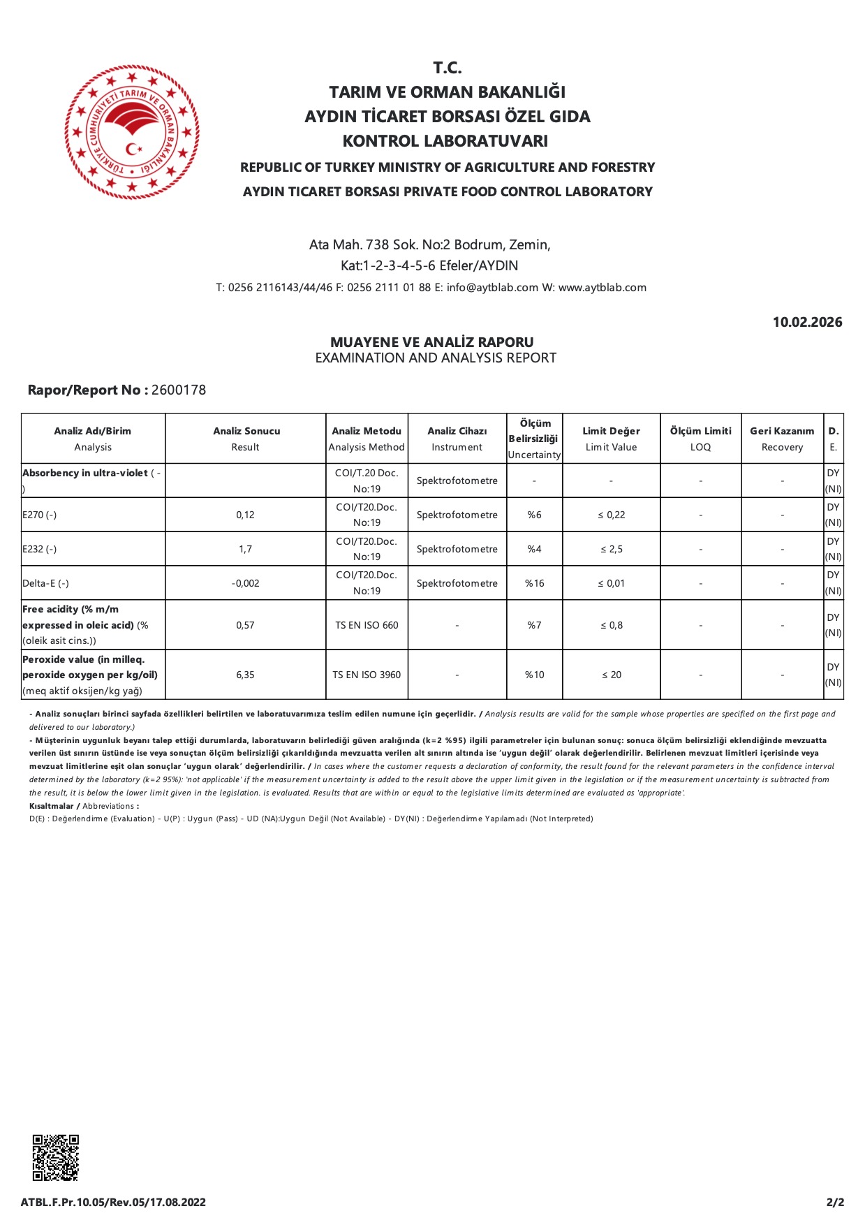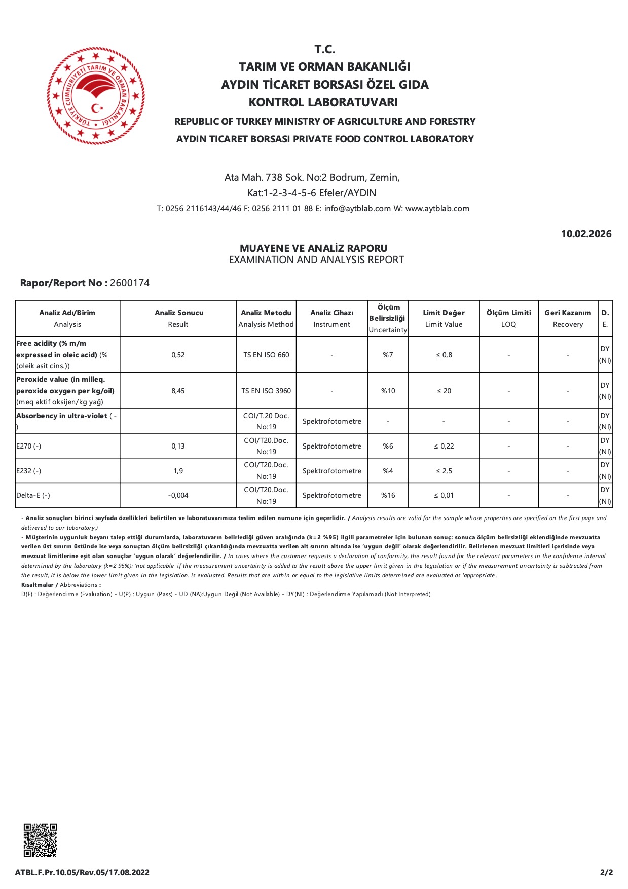 Hier finden Sie die Analyse, die wir direkt nach der Ernte erstellen. Bis zur nächsten Ernte verändern sich die Werte im Laufe der Zeit durch die natürliche Reifung des Olivenöls.
